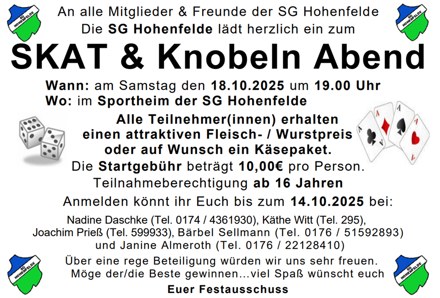 Die Veranstaltung stand unter dem Zeichen des Zusammenhalts, denn trotz anfänglicher Schwierigkeiten bei der Helferakquise gelang es, ein erfolgreiches Event auf die Beine zu stellen. Ein herzlicher Dank gilt also ganz besonders allen Mitgliedern der SG, die mit großem Engagement zum Gelingen beigetragen haben – aber natürlich auch den zahlreichen Teilnehmerinnen und Teilnehmern, die auch in diesem Jahr wieder den Weg zu uns gefunden haben.