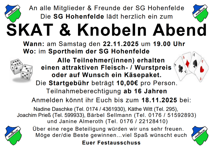 Die Veranstaltung stand unter dem Zeichen des Zusammenhalts, denn trotz anfänglicher Schwierigkeiten bei der Helferakquise gelang es, ein erfolgreiches Event auf die Beine zu stellen. Ein herzlicher Dank gilt also ganz besonders allen Mitgliedern der SG, die mit großem Engagement zum Gelingen beigetragen haben – aber natürlich auch den zahlreichen Teilnehmerinnen und Teilnehmern, die auch in diesem Jahr wieder den Weg zu uns gefunden haben.